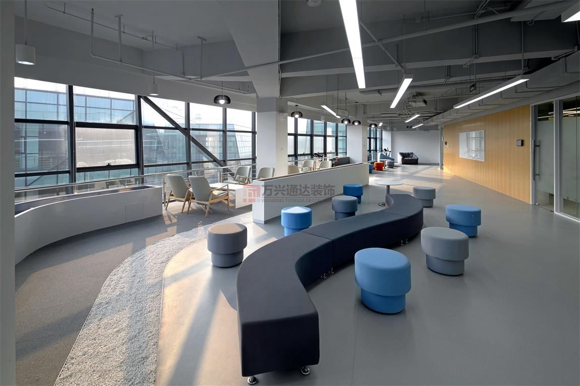 辦公室裝修公司案例:整體辦公空間設(shè)(shè)計(jì)中,大氣與細(xì)(xì)致并存,將設(shè)(shè)計(jì)與藝術(shù)(shù)結(jié)(jié)合。設(shè)(shè)計(jì)理念: 室內(nèi)(nèi)設(shè)(shè)計(jì)元素均交織凝聚于行云流水的曲線(xiàn)流動(dòng)空間,設(shè)(shè)計(jì)表現(xiàn)(xiàn)形式不受拘束,每個(gè)空間都有自己特殊的弧度,致力于搭建“創(chuàng)(chuàng)新+智能+生態(tài)(tài)”的辦公環(huán)(huán)境。